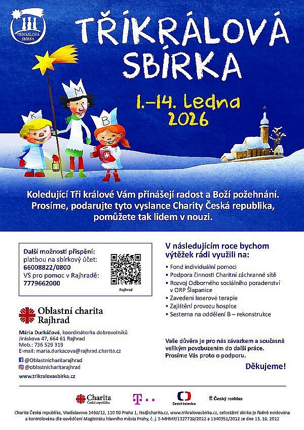 V Tříkrálové sbírce, která se v naší obci konala 4. 1. 2026, se vybralo 24 150,- Kč.